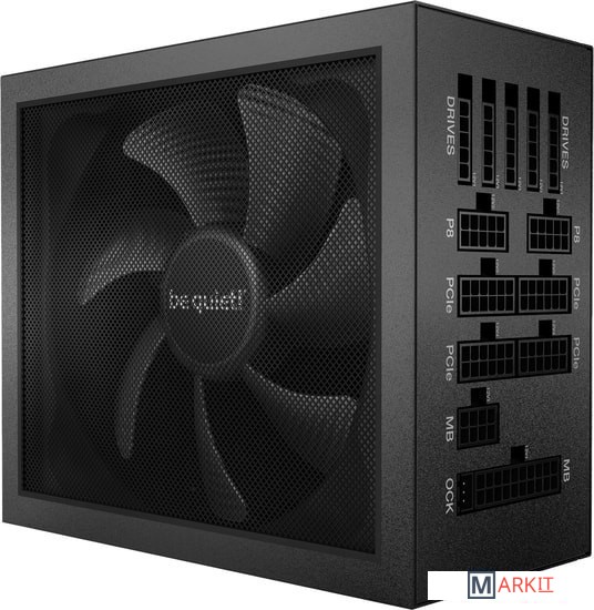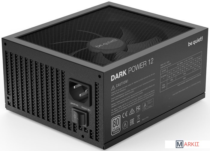 Технологии Active Rectifier + full bridge LLC обеспечивают не имеющую равных стабильность сигнала и эффективность;Специальный ключ (Overclocking key) для выбора между четырьмя 12В линиями или одной сверхмощной;Специальное крепление вентилятора be quiet! Silent Wings обеспечивает максимальный приток воздуха и практически бесшумную работу при обычных нагрузках. Это достигается благодаря конструкции крыльчатки, улучшенному гидродинамическому подшипнику с 6-полюсным моторчиком для снижения вибраций и гарантирует длительный срок службы и минимальное энергопотребление.Воздухозаборник вентилятора Dark Power 12 1000W представляет собой воронку особой формы, состоящую из двух частей, которая увеличивает приток воздуха и снижает нежелательную турбулентность. В сочетании с беспроводной конструкцией внутри блока питания холодный воздух поступает ко всем компонентам внутри блока питания, что в конечном итоге приводит к увеличению срока службы.