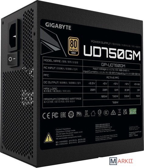 Во всех ключевых блоках схемотехники применяются высококачественные японские конденсаторы, которые обеспечивают безупречную эффективную работу и продолжительный срок службы изделия.По сравнению с типовой схемой охлаждения силовых компонентов, в изделии GIGABYTE установлен радиатор, площадь теплорассеивания которого увеличена почти на 200%, кроме того, оптимизировано распределение воздушных потоков. Таким образом, за счет повышения эффективности теплорассеивания более чем на 10%, существенно возрастает срок службы ключевых компонентов.Скорость вращения вентилятора регулируется в соответствии с автоматическим определением потребляемой мощности, крыльчатка останавливается, когда система находится в режиме простоя, либо нагрузка не превышает 20 %. Гидравлический подшипник в составе вентилятора обеспечивает стабильную работу и продолжительный срок службы изделия.Для того, чтобы быть уверенным в безупречной работоспособности ПК в любом режиме, мы оснастили блоки питания AORUS совершенными встроенными схемами защиты OCP, OTP, OVP, OPP, UVP и SCP, а также успешно провели всестороннее тестирование и испытание наших изделий на соответствие нормам и правилам безопасности целого ряда стран.Модульный дизайн и плоские кабели черного цвета. Подключайте только необходимые кабели, минимизируйте помехи для конвекционных воздушных потоков и сохраните оптимальной схему теплорассеивания корпуса.Изделие, отвечающее требованиям сертификата 80 Plus Gold, в условиях 50% нагрузки, демонстрирует энергоэффективность на уровне >90%. Чем выше энергоэффективность тем ниже потери в цепях питания, на фоне комфортного температурного режима для ключевых компонентов и пониженного уровня шума вентилятора системы охлаждения.Выделенная шина +12 В обеспечивает качественное питание требуемой мощности и стабильную работу установленных в системе компонентов, в том числе в режиме Overclocking. Процедура подключения силового кабеля также не вызывает затруднений.Оригинальные конструкторские разработки, фирменная технология теплорассеивания, реализованная в составе различных продуктов GIGABYTE, а также применение высококачественной элементной базы в рамках концепции Ultra Durable, предопределили возможность уменьшить длину корпуса блока питания до 140 мм, что позволяет легко инсталлировать изделие, даже в условиях ограниченого пространства для инсталляции блока питания, предусмотренного конструктивом шасси системного блока.