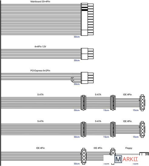 | Модульное подключение кабелей питания | ✘ |