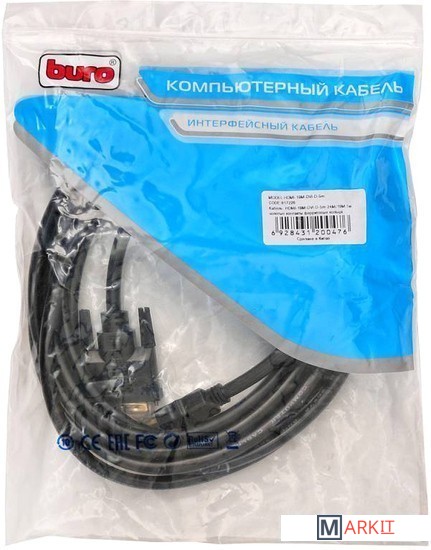 Markit » Кабели, адаптеры, разветвители » Кабель Buro HDMI-19M-DVI-D-5M