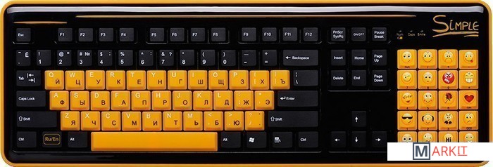 Simple S18 является беспроводным и улучшенным вариантом супер-эмоциональной клавиатуры Simple S8.Клавиатура S18 облегчает общение благодаря тому, что вместо цифрового поля справа, на ней располагается блок специальных клавиш. Каждая клавиша блока представляет собой тот или иной смайлик, что освобождает от набора на основной клавиатуре сложных комбинаций или выбора нужного эмотикона из списка используемой программы. Пользователь такого гаджета сможет одним нажатием кнопки выразить необходимую эмоцию.