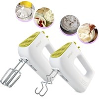 Класс защиты от поражения электрическим током: II;Материал корпуса: пластик;Материал насадок: хромированная сталь;Размеры: 195x95x145 мм;Вес: 0.8 кг.Комплектация:- миксер;- 2 венчика для взбивания;- 2 крюка для замеса;- держатель насадок;- руководство по эксплуатации.