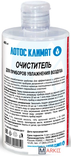 Очиститель для приборов увлажнения воздуха «ЛОТОС КЛИМАТ» 460 МЛ. Подходит для Моек воздуха и Ультразвуковых увлажнителей воздуха различных видов и производителей. Специально разработанное средство для эффективной и удобной очистки внутренних поверхностей приборов увлажнения и очистки воздуха от отложений солей жесткости, стойких налетов поглощенных загрязнений, примесей и осадков. Очиститель для приборов увлажнения воздуха «ЛОТОС КЛИМАТ» 460 МЛ. Подходит для Моек воздуха и Ультразвуковых увлажнителей воздуха различных видов и производителей. Специально разработанное средство для эффективной и удобной очистки внутренних поверхностей приборов увлажнения и очистки воздуха от отложений солей жесткости, стойких налетов поглощенных загрязнений, примесей и осадков. Не вызывает повреждений пластика.