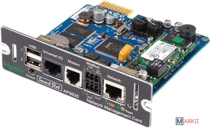 Плата сетевого управления ИБП 2 с функцией контроля состояния окружающей среды, контроля доступа по выделенному каналу и поддержкой ModBus.Совместимость со всеми ИБП с разъемами SmartSlot.