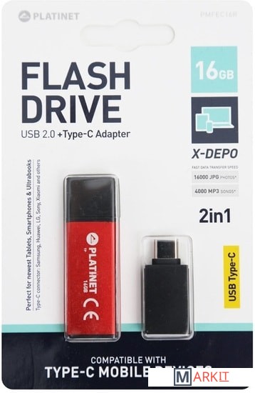 Markit » Флешки USB » USB Flash Platinet X-Depo + Type-C Adapter 32GB (красный)